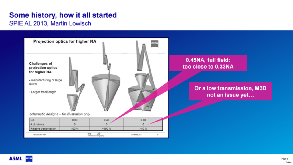 • 0.45NA 与 0.5NA 尝试暴露出吞吐量不足等问题;